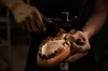 Silver melting in flames at handmade jewellery factory.